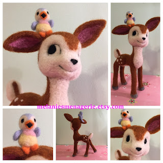 Deer and Bluebird Friend / Felted / Soft by MelaniesMenagerie